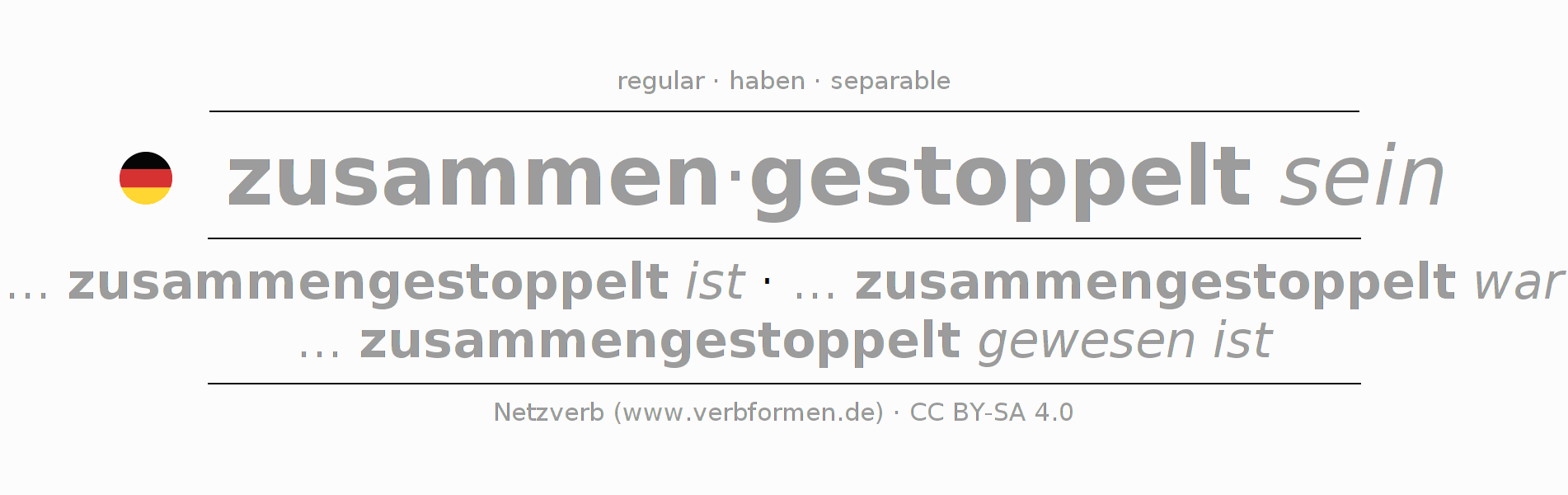 Conjugation tables for all tenses of the verb zusammenstoppeln