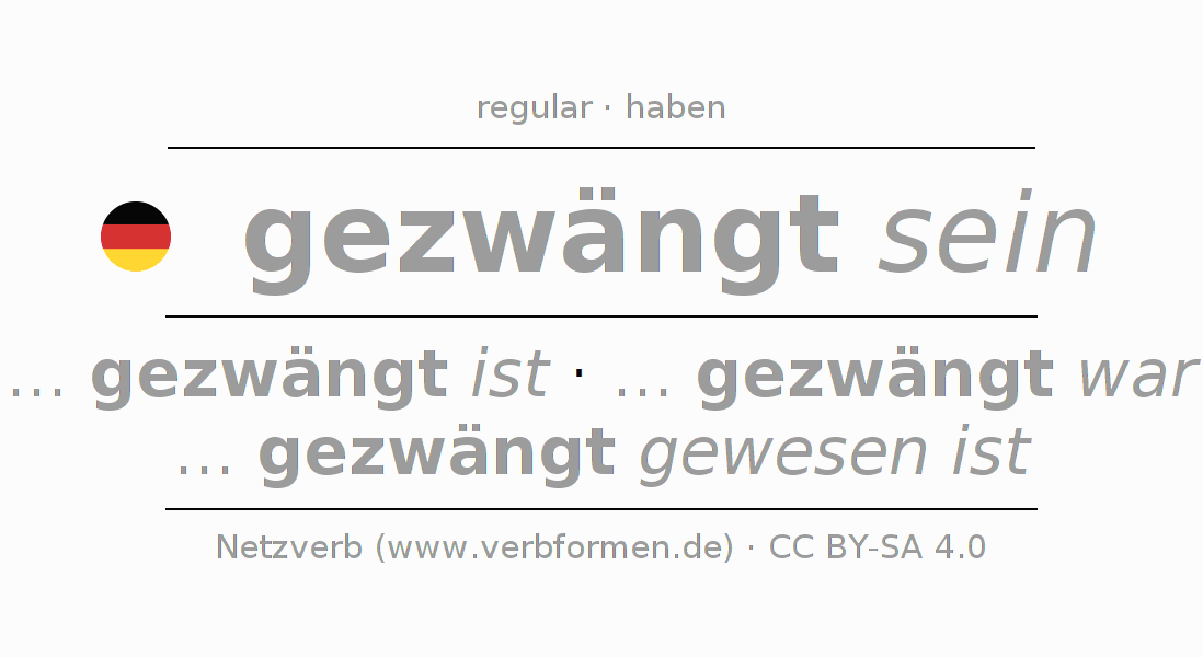 Worksheets are used generally for the conjugation of the verb zwängen in teaching. The materials can be used as Open Educational Resources (OER) for exercises, for games and as Tasks (CC BY-SA 4.0). There are many different types of tasks available for the verb zwängen. These are overview sheets with complete conjugation, puzzles and games that require joint learning. The entire educational material is available for free as a PDF download, as pictures and as an interactive browser version. In addition to the tasks, countless examples for zwängen also provide an aid to using the verb.