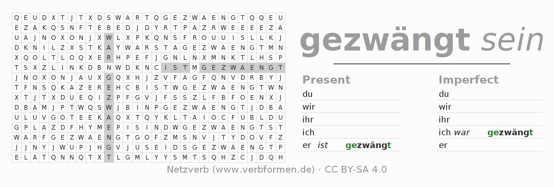 With these search word puzzles you can learn the conjugation of the German verb zwängen.