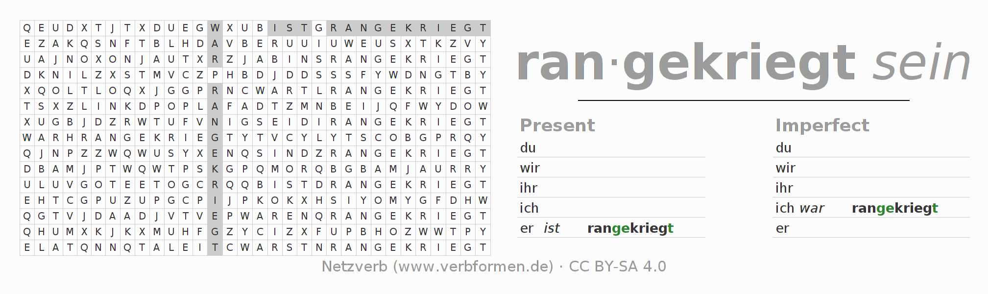 With these search word puzzles you can learn the conjugation of the German verb rankriegen.