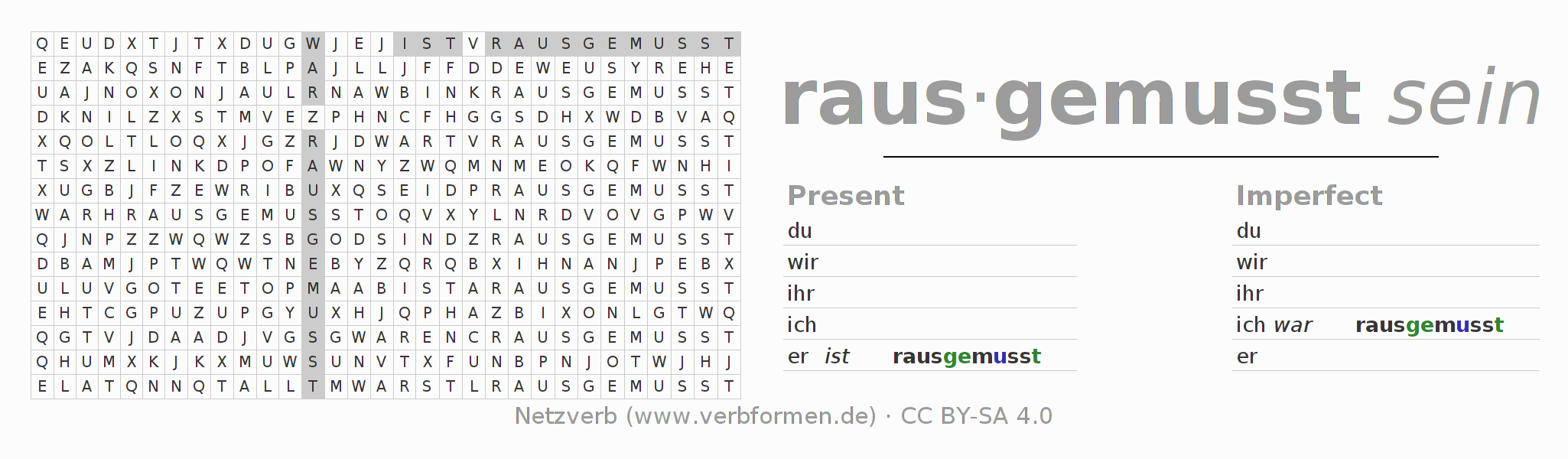 With these search word puzzles you can learn the conjugation of the German verb rausmüssen.