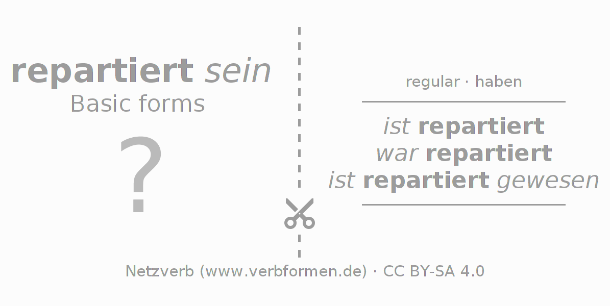 Worksheets for conjugation of German Verb repartieren 〈Statal Passive〉