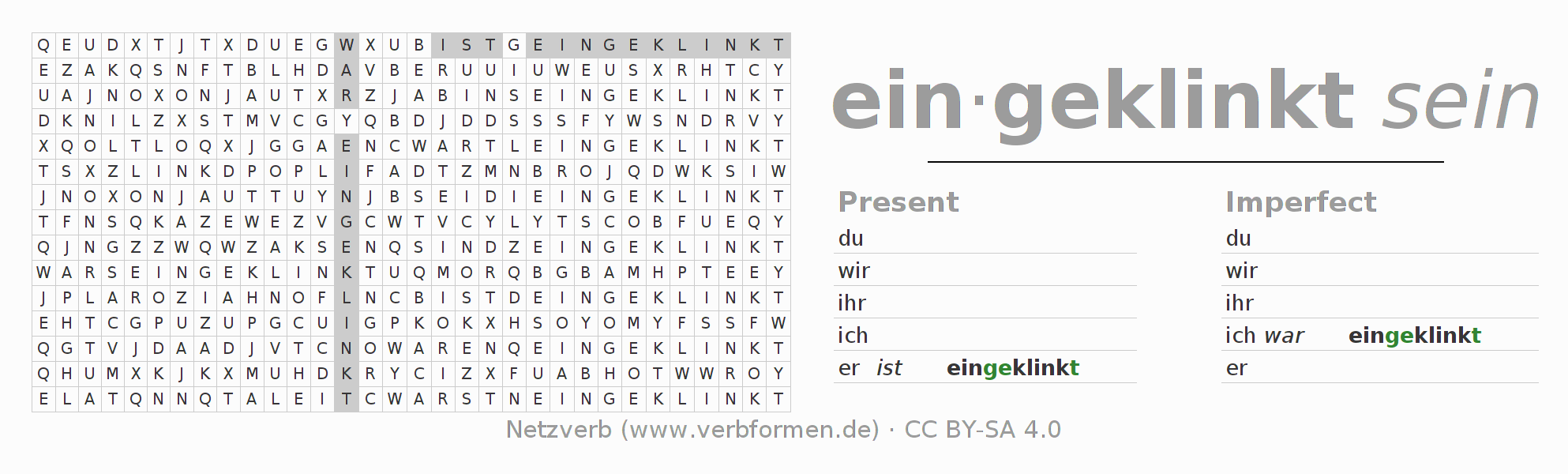 With these search word puzzles you can learn the conjugation of the German verb sich einklinken.