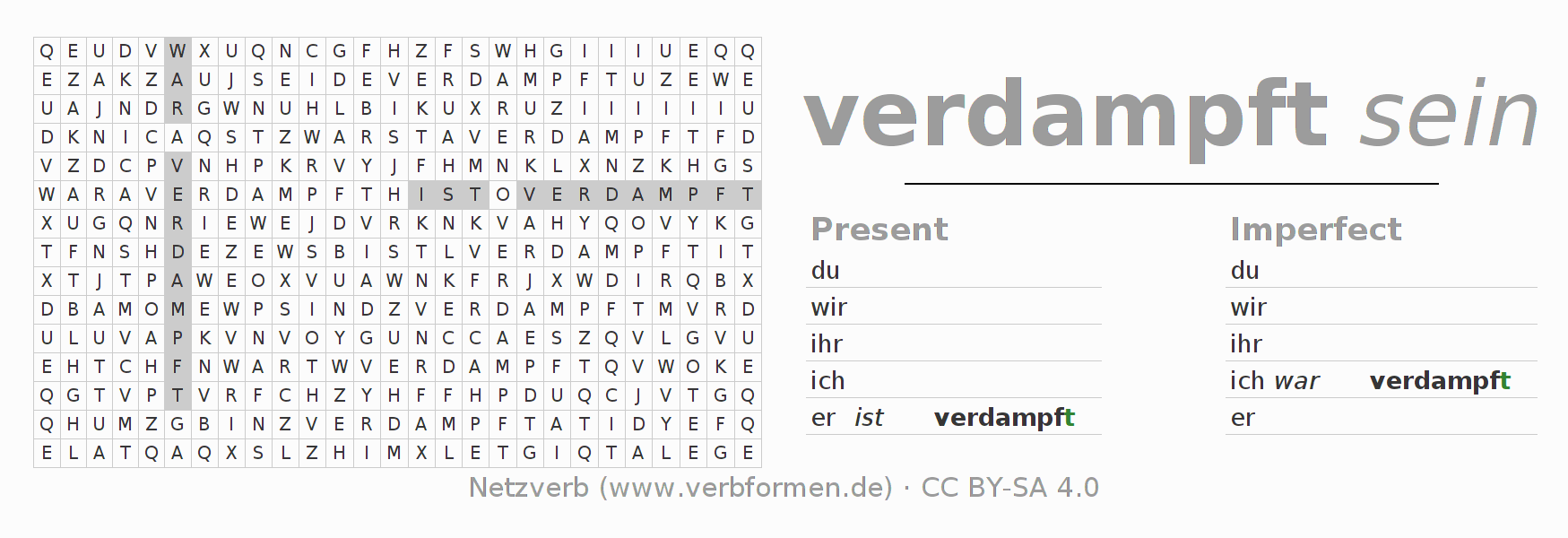 With these search word puzzles you can learn the conjugation of the German verb verdampfen.
