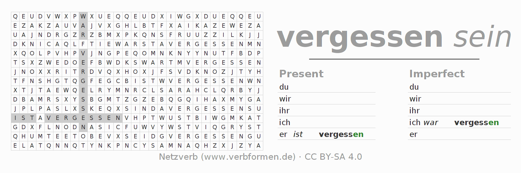 With these search word puzzles you can learn the conjugation of the German verb vergessen.