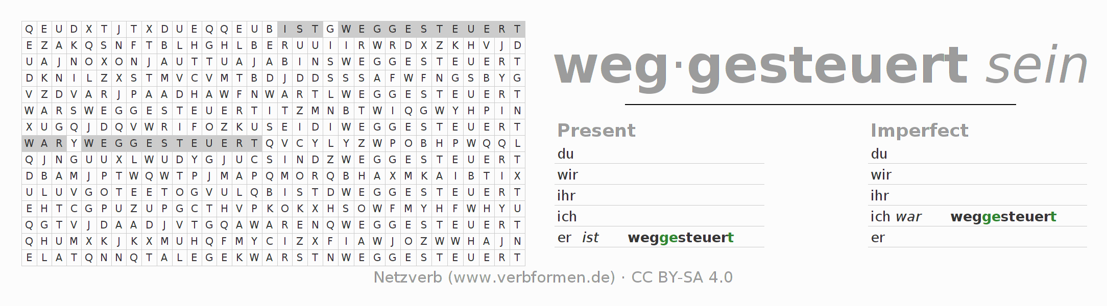 With these search word puzzles you can learn the conjugation of the German verb wegsteuern.