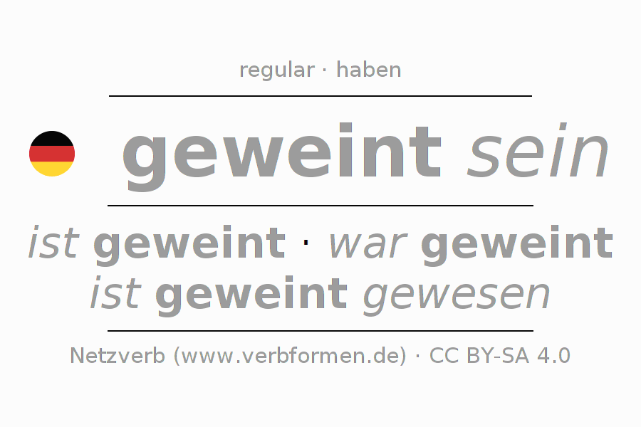Worksheets are used generally for the conjugation of the verb weinen in teaching. The materials can be used as Open Educational Resources (OER) for exercises, for games and as Tasks (CC BY-SA 4.0). There are many different types of tasks available for the verb weinen. These are overview sheets with complete conjugation, puzzles and games that require joint learning. The entire educational material is available for free as a PDF download, as pictures and as an interactive browser version. In addition to the tasks, countless examples for weinen also provide an aid to using the verb.