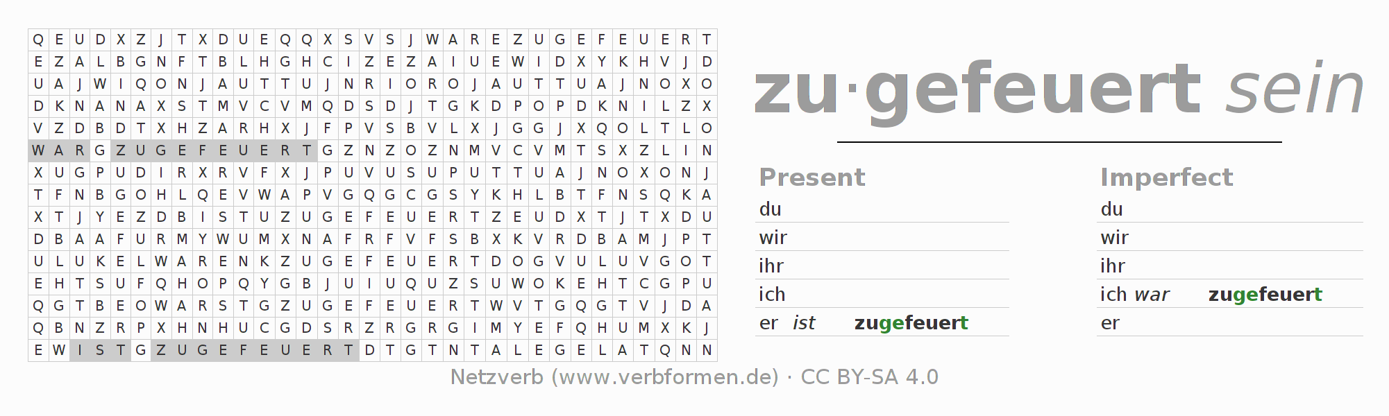 With these search word puzzles you can learn the conjugation of the German verb zufeuern.