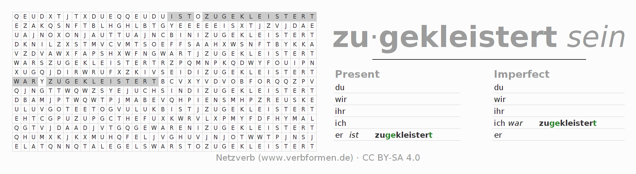 With these search word puzzles you can learn the conjugation of the German verb zukleistern.