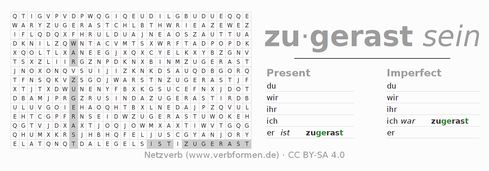 With these search word puzzles you can learn the conjugation of the German verb zurasen.