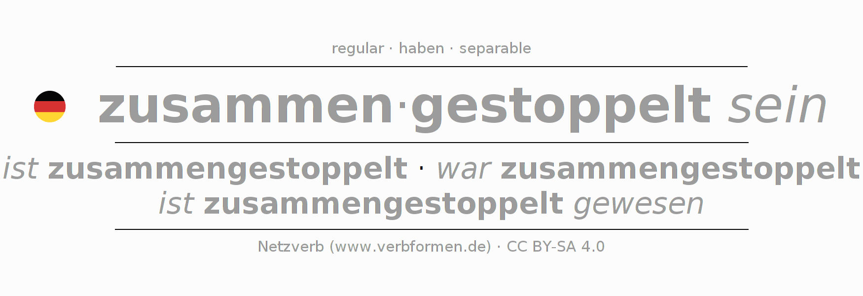 Conjugation tables for all tenses of the verb zusammenstoppeln