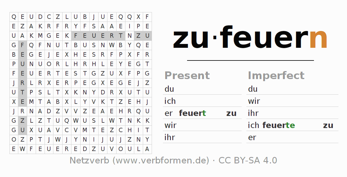 With these search word puzzles you can learn the conjugation of the German verb zufeuern.