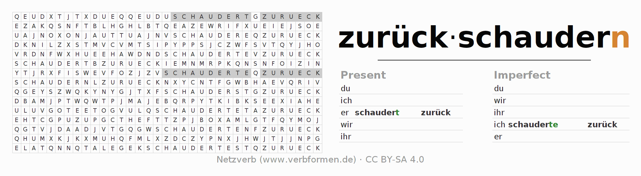 With these search word puzzles you can learn the conjugation of the German verb zurückschaudern.