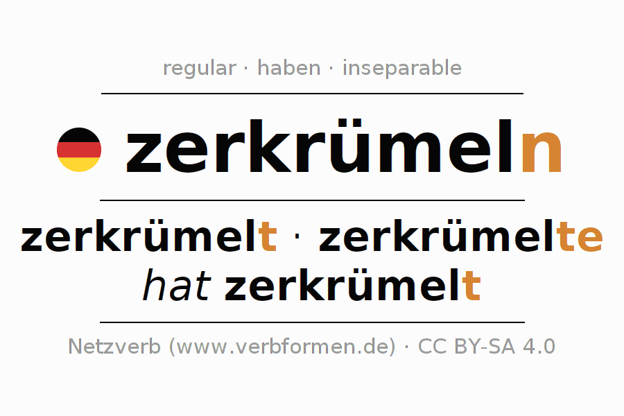 - Infinitive II: zerkrümelt haben, zerkrümelt zu haben