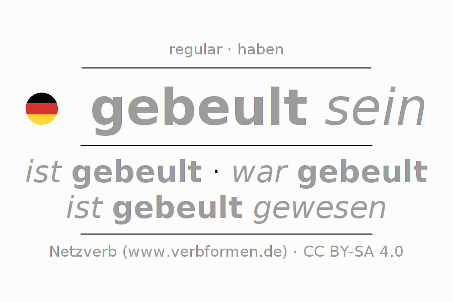 Clear online presentation of the verb 'gebeult sein' including all verb forms. Therfore, the flection of the verb gebeult sein can be useful for homework, tests, exams, German lessons in school, learning German, during studies and adult education. Especially for people learning German it is essential to know the correct flection of a verb (ist gebeult - war gebeult - ist gebeult gewesen).
