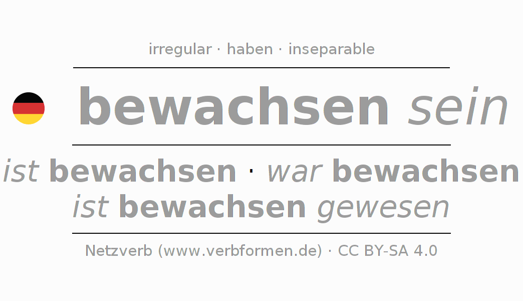 | er | ist bewachsen | war bewachsen | sei bewachsen | wäre bewachsen | - |