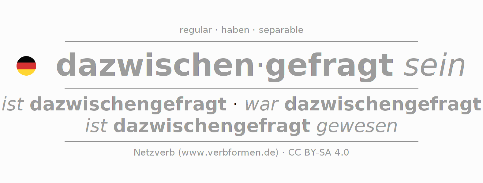 - Present: ich bin dazwischengefragt, du bist dazwischengefragt, er ist dazwischengefragt, wir sind dazwischengefragt, ihr seid dazwischengefragt, sie sind dazwischengefragt