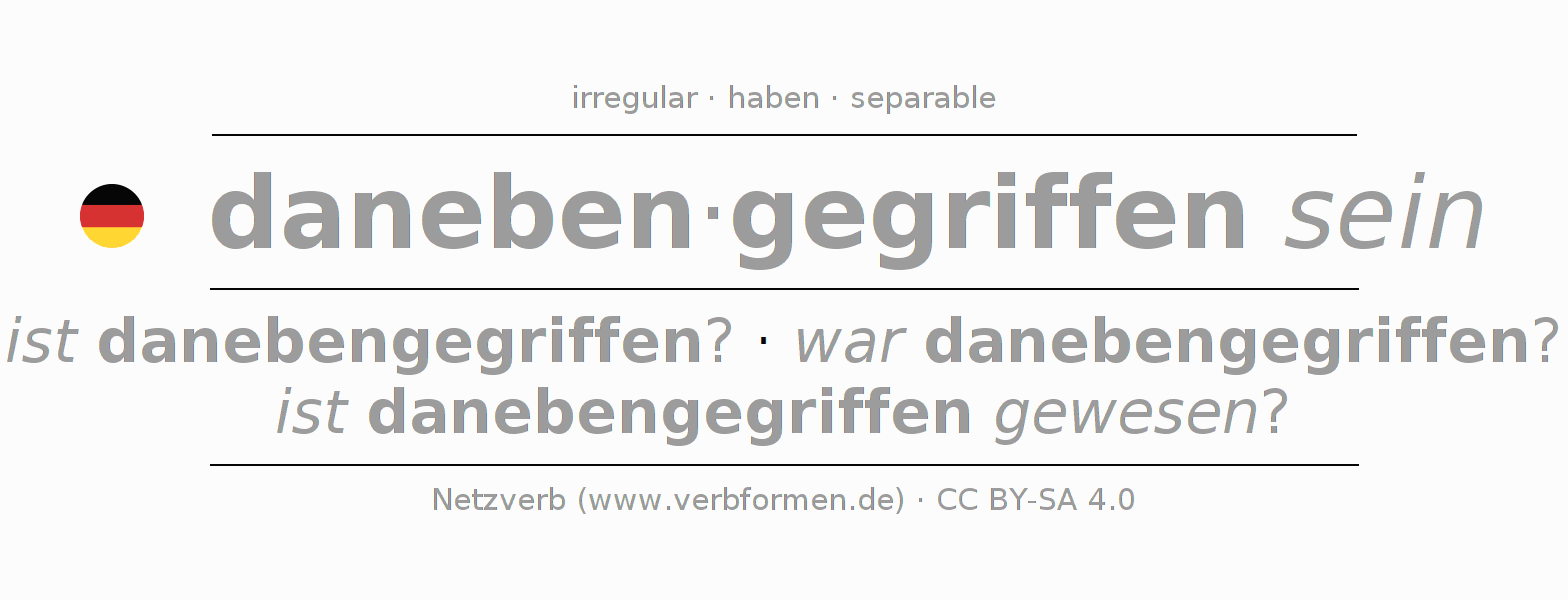 - Infinitive I: danebengegriffen sein, danebengegriffen zu sein