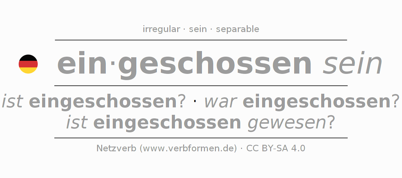 - Infinitive I: eingeschossen sein, eingeschossen zu sein