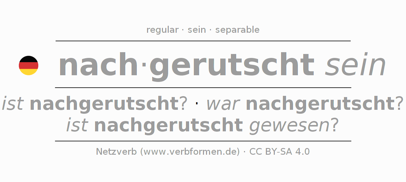 - Infinitive I: nachgerutscht sein, nachgerutscht zu sein