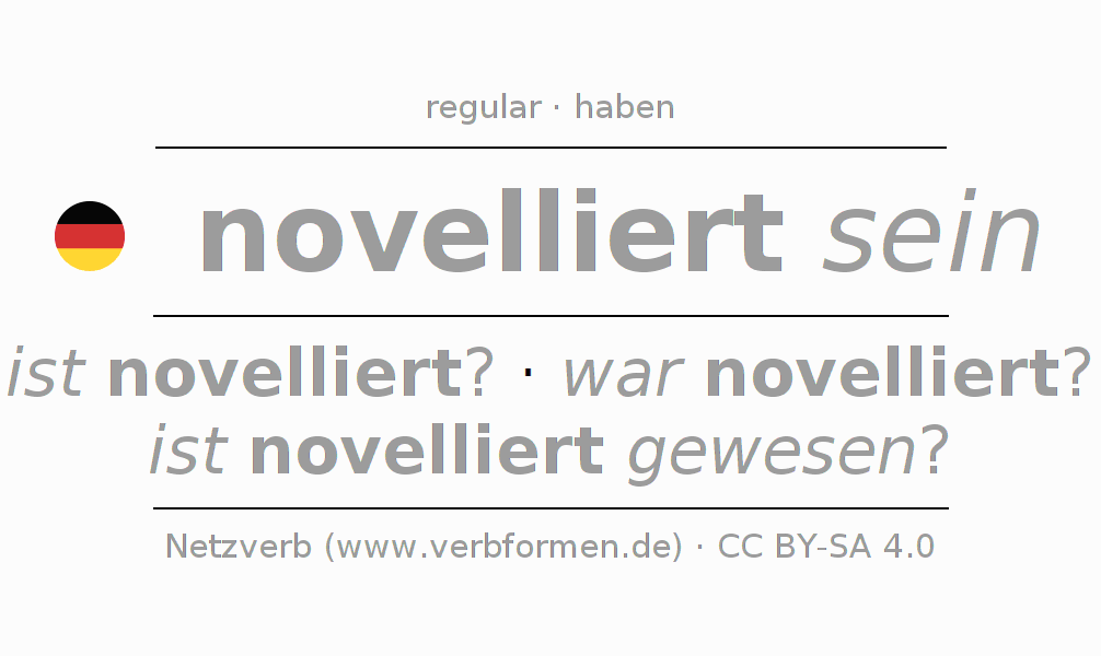 | er | ist novelliert? | war novelliert? | sei novelliert? | wäre novelliert? | - |