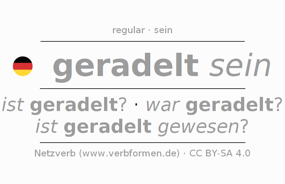 - Future: werde ich geradelt sein?, werdest du geradelt sein?, werde er geradelt sein?, werden wir geradelt sein?, werdet ihr geradelt sein?, werden sie geradelt sein?