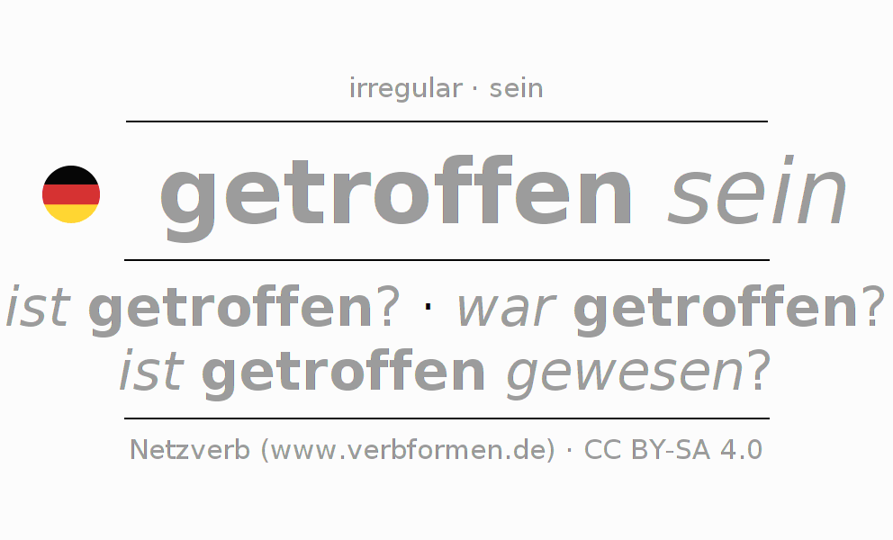 - Future: werde ich getroffen sein?, wirst du getroffen sein?, wird er getroffen sein?, werden wir getroffen sein?, werdet ihr getroffen sein?, werden sie getroffen sein?