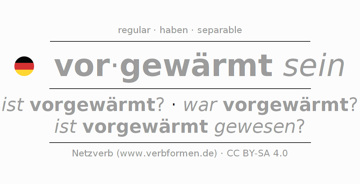 ist vorgewärmt? · war vorgewärmt? · ist vorgewärmt gewesen?