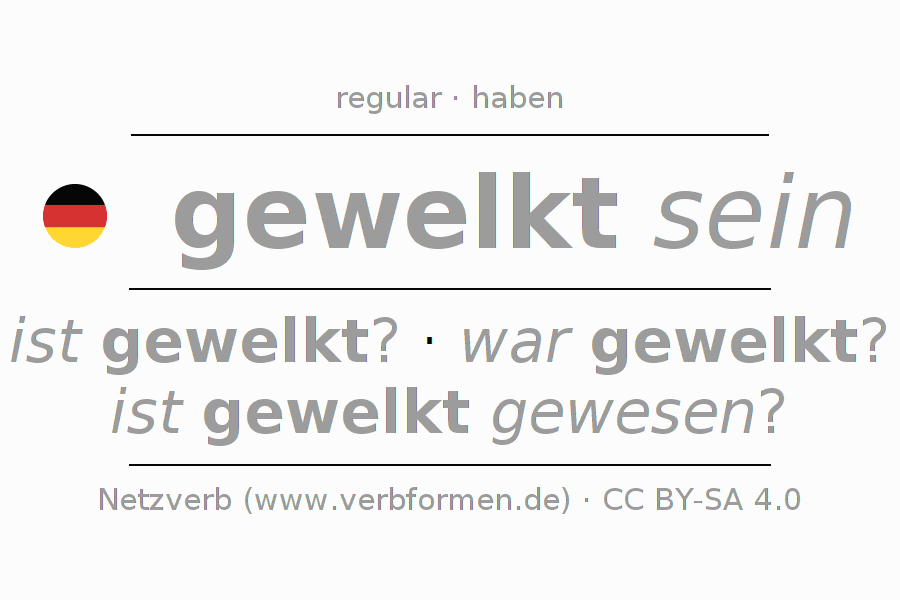 - Future: werde ich gewelkt sein?, wirst du gewelkt sein?, wird er gewelkt sein?, werden wir gewelkt sein?, werdet ihr gewelkt sein?, werden sie gewelkt sein?