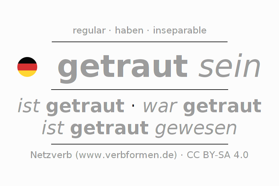 | ich | bin getraut | war getraut | sei getraut | wäre getraut | - |