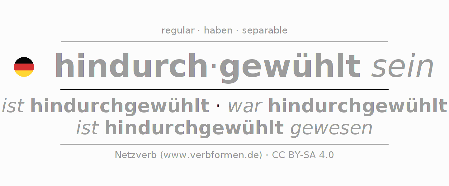 - Infinitive II: hindurchgewühlt gewesen sein, hindurchgewühlt gewesen zu sein