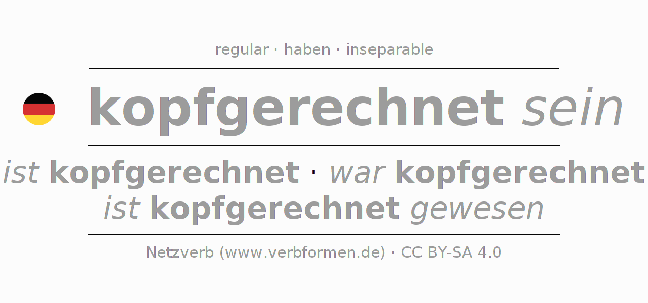 - Present: ich bin kopfgerechnet, du bist kopfgerechnet, er ist kopfgerechnet, wir sind kopfgerechnet, ihr seid kopfgerechnet, sie sind kopfgerechnet
