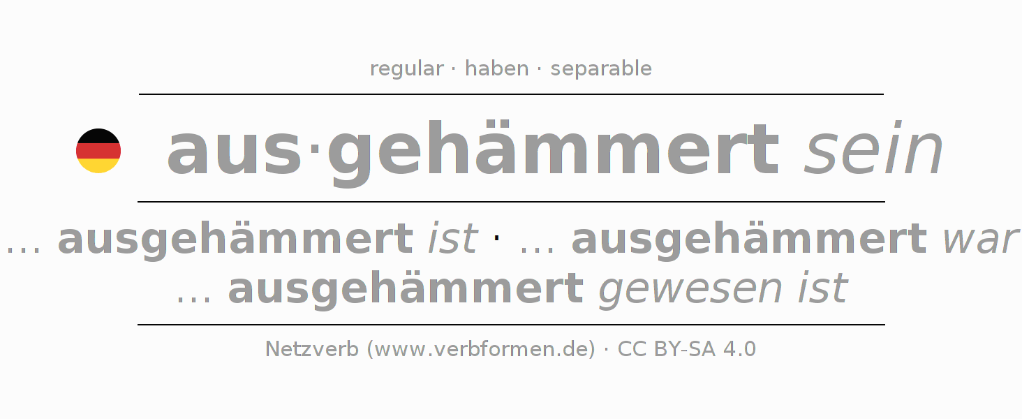 - Participle II: ausgehämmert gewesen
