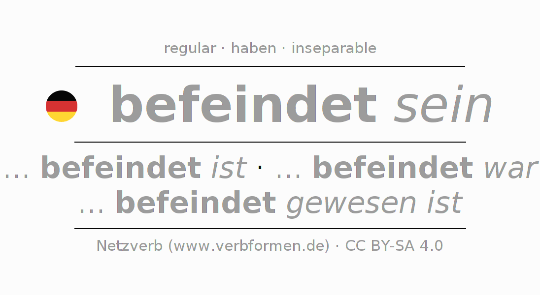 - Future: ... ich befeindet sein werde, ... du befeindet sein wirst, ... er befeindet sein wird, ... wir befeindet sein werden, ... ihr befeindet sein werdet, ... sie befeindet sein werden