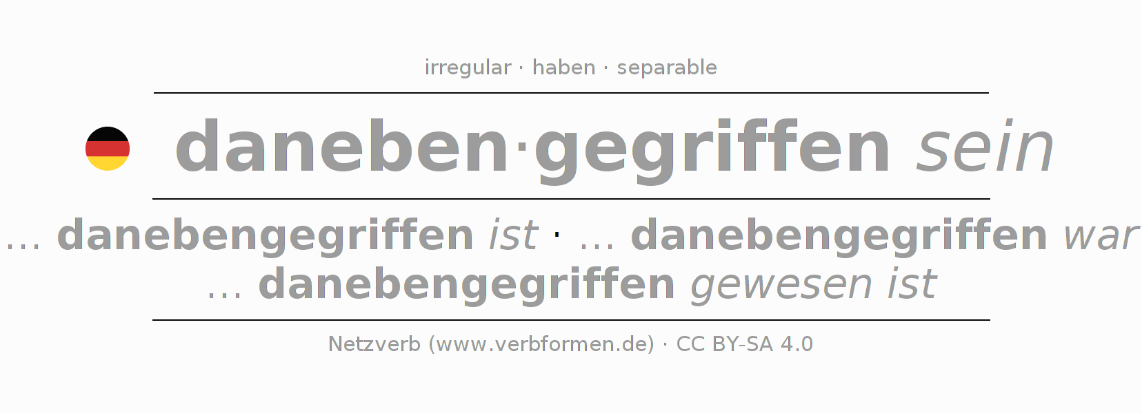 - Infinitive I: danebengegriffen sein, danebengegriffen zu sein