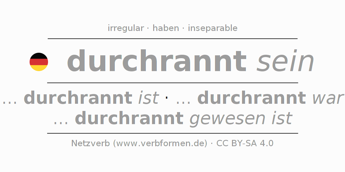 - Infinitive I: durchrannt sein, durchrannt zu sein