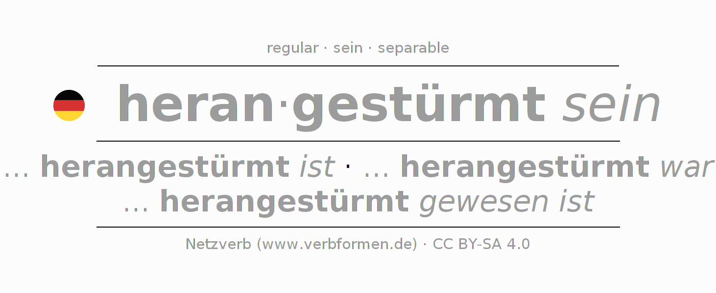 - Infinitive I: herangestürmt sein, herangestürmt zu sein