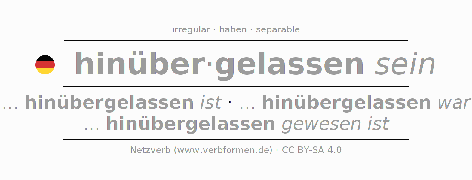 - Present: ... ich hinübergelassen bin, ... du hinübergelassen bist, ... er hinübergelassen ist, ... wir hinübergelassen sind, ... ihr hinübergelassen seid, ... sie hinübergelassen sind