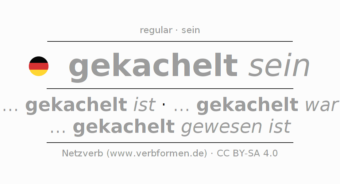 Clear online presentation of the verb 'gekachelt sein' including all verb forms. Therfore, the flection of the verb gekachelt sein can be useful for homework, tests, exams, German lessons in school, learning German, during studies and adult education. Especially for people learning German it is essential to know the correct flection of a verb (... gekachelt ist - ... gekachelt war - ... gekachelt gewesen ist).