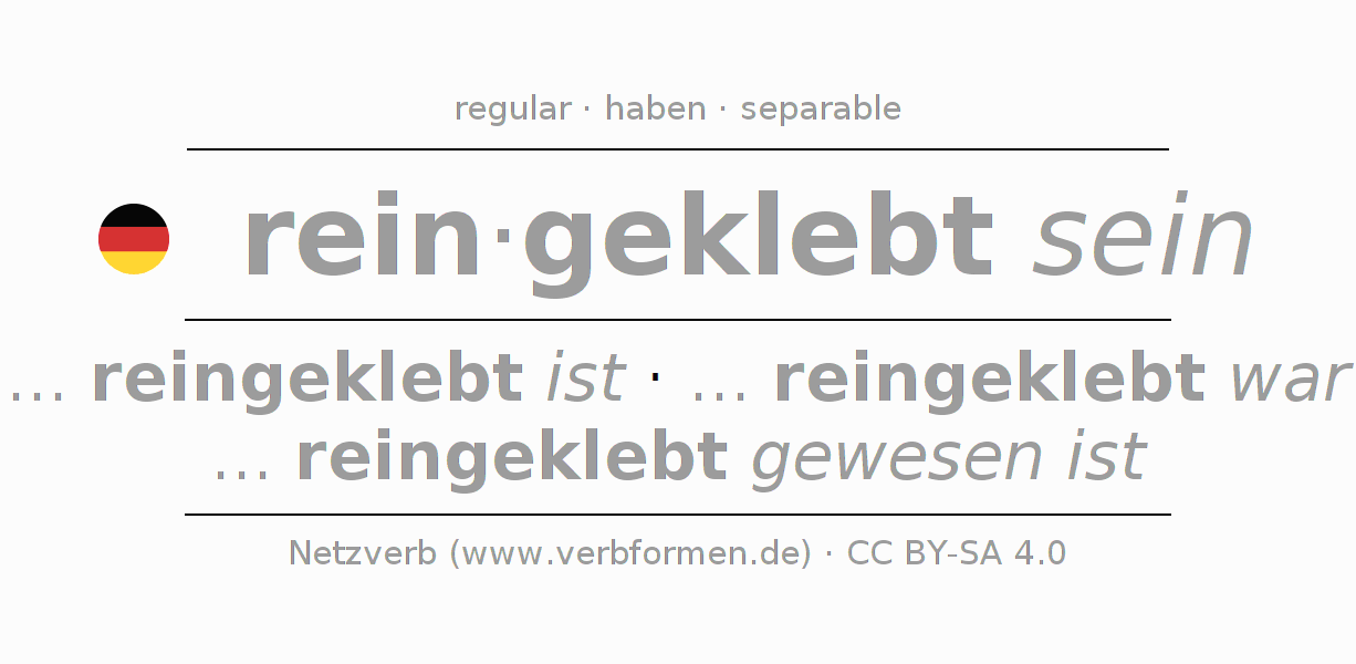 - Infinitive II: reingeklebt gewesen sein, reingeklebt gewesen zu sein