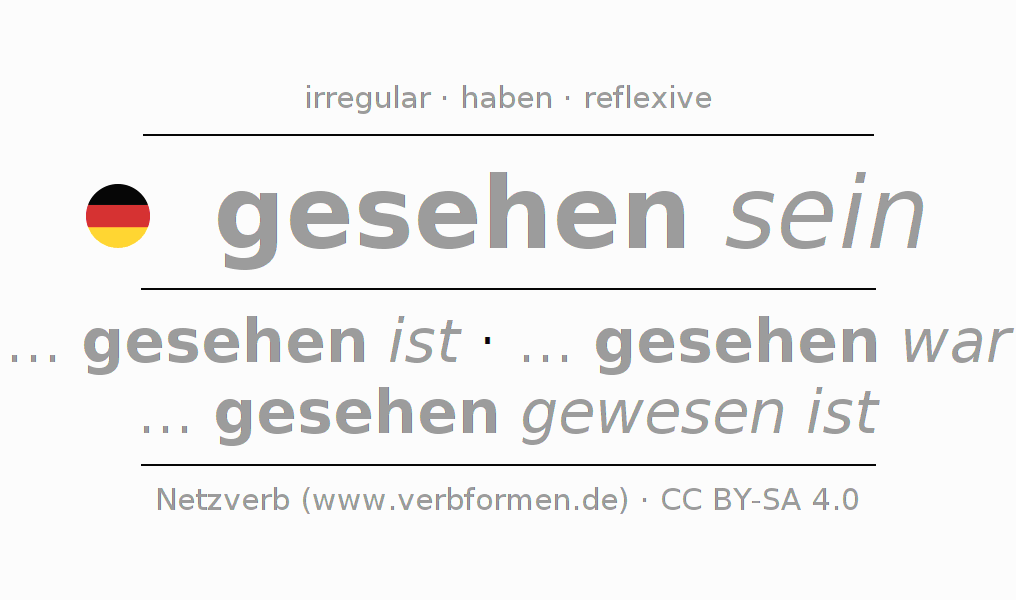 - Present: ... ich geseh(e)n bin, ... du geseh(e)n bist, ... er geseh(e)n ist, ... wir geseh(e)n sind, ... ihr geseh(e)n seid, ... sie geseh(e)n sind