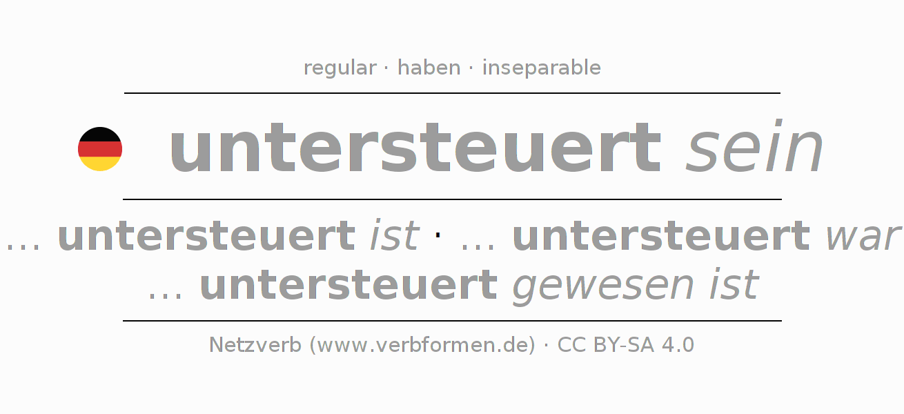 - Imperfect: ... ich untersteuert war, ... du untersteuert warst, ... er untersteuert war, ... wir untersteuert waren, ... ihr untersteuert wart, ... sie untersteuert waren