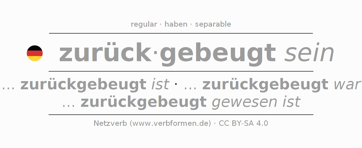 - Present: ... ich zurückgebeugt bin, ... du zurückgebeugt bist, ... er zurückgebeugt ist, ... wir zurückgebeugt sind, ... ihr zurückgebeugt seid, ... sie zurückgebeugt sind