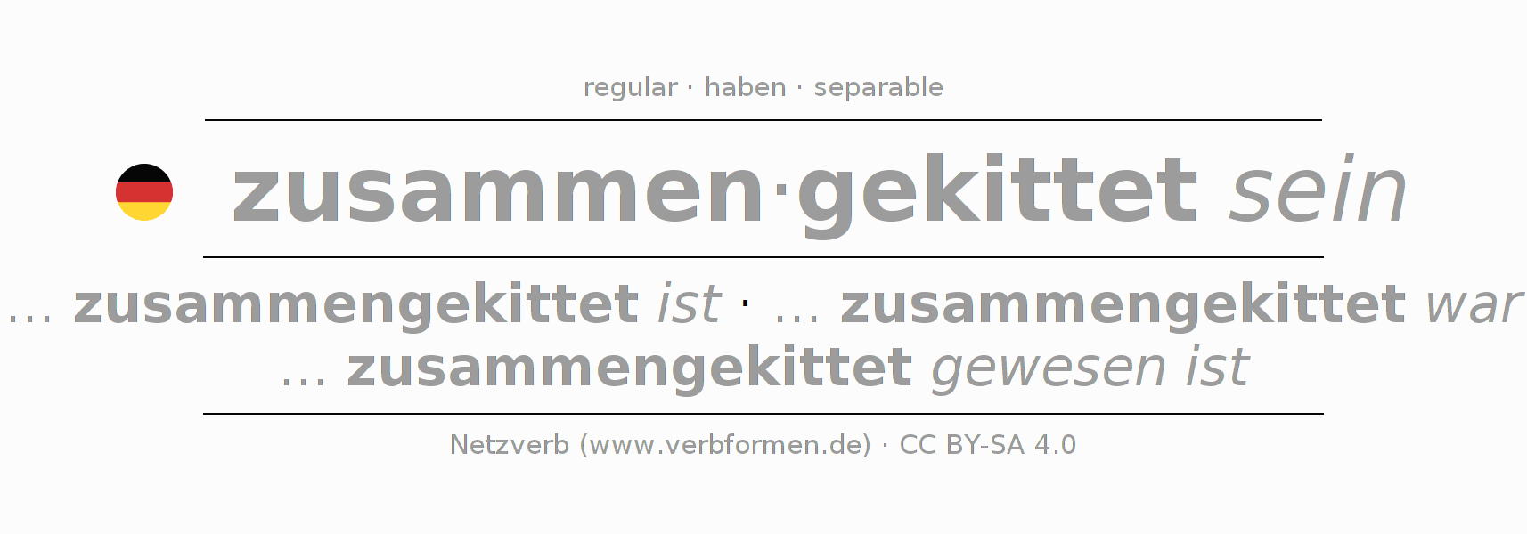 ... zusammengekittet ist · ... zusammengekittet war · ... zusammengekittet gewesen ist