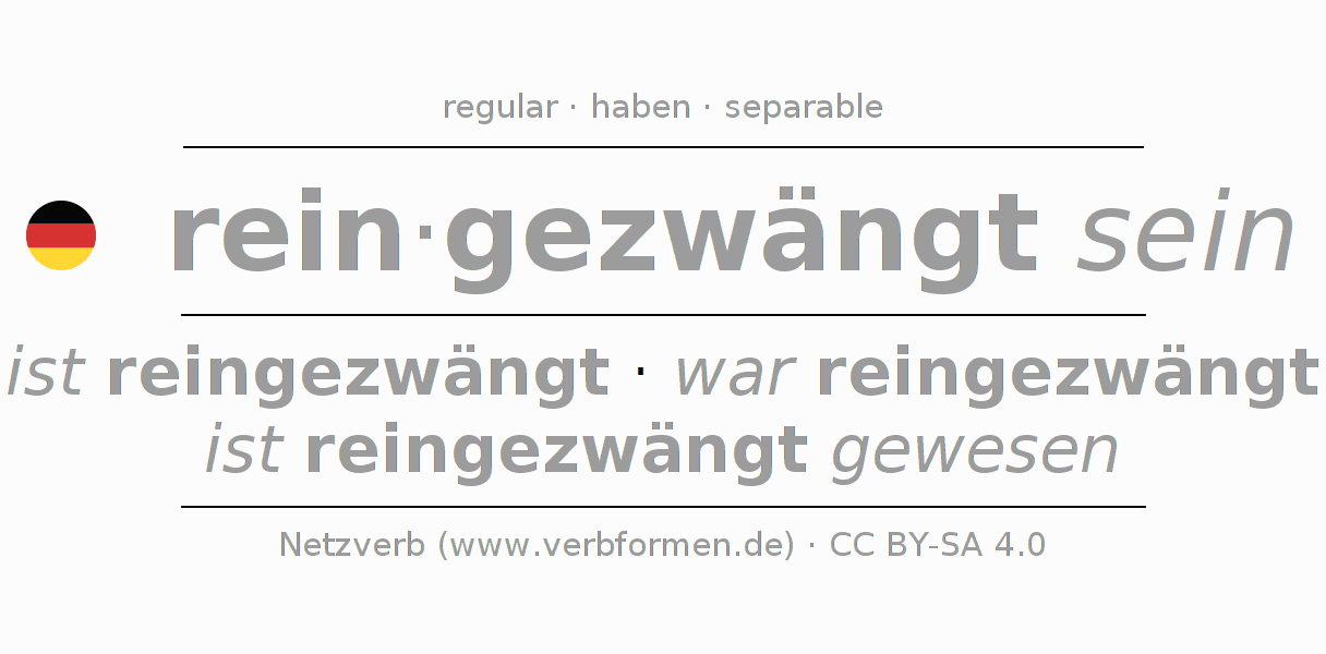 ist reingezwängt · war reingezwängt · ist reingezwängt gewesen