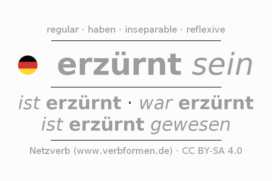 | ich | bin erzürnt | war erzürnt | sei erzürnt | wäre erzürnt | - |