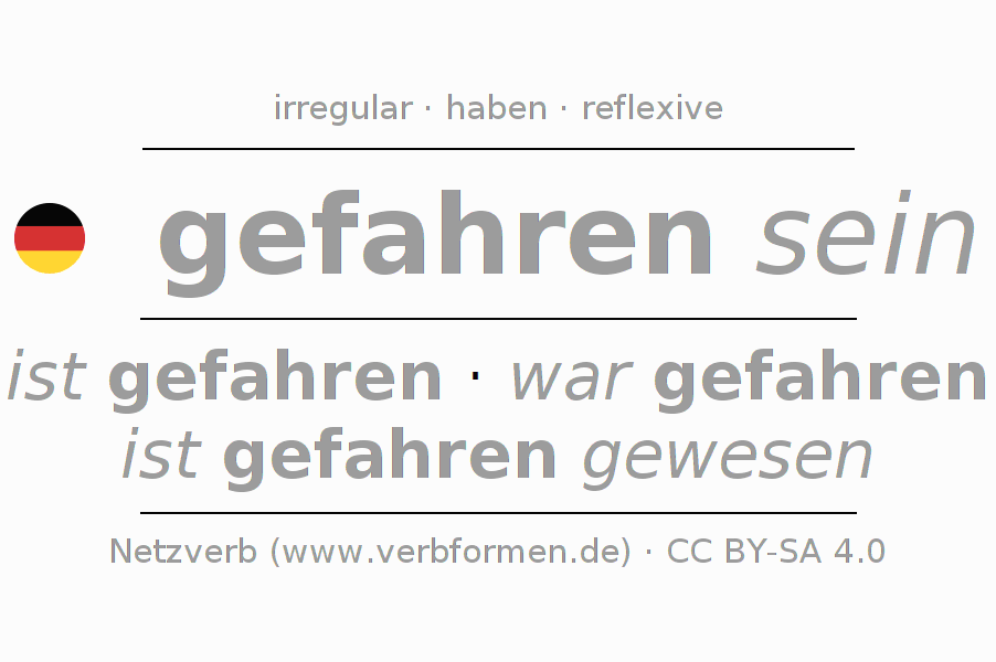 Clear online presentation of the verb 'gefahren sein' including all verb forms. Therfore, the flection of the verb gefahren sein can be useful for homework, tests, exams, German lessons in school, learning German, during studies and adult education. Especially for people learning German it is essential to know the correct flection of a verb (ist gefahren - war gefahren - ist gefahren gewesen).