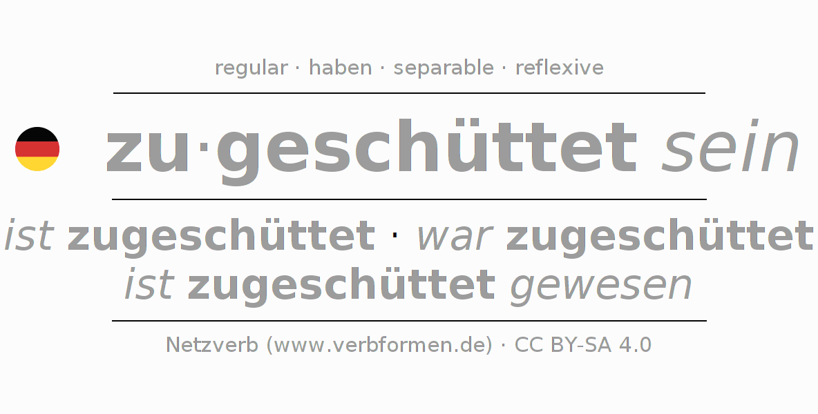 ist zugeschüttet · war zugeschüttet · ist zugeschüttet gewesen