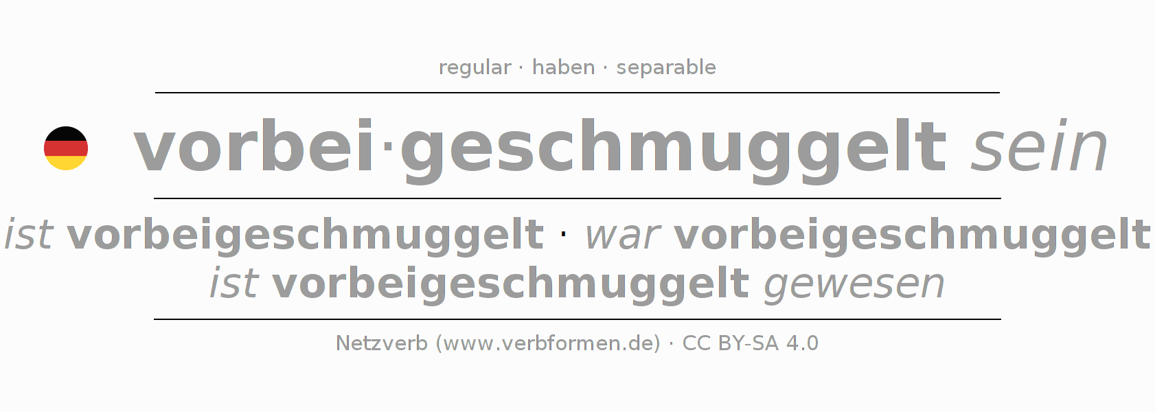 - Participle II: vorbeigeschmuggelt gewesen