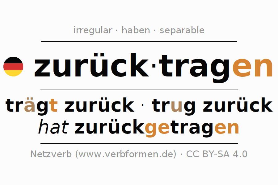 - Present: trag(e) (du) zurück, tragen wir zurück, tragt (ihr) zurück, tragen Sie zurück